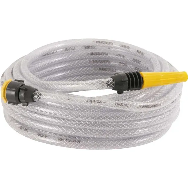 Mangueira para jardim VONDER, transparente e trançada, com 20 metros de comprimento. Ideal para irrigar seu jardim com praticidade e eficiência.