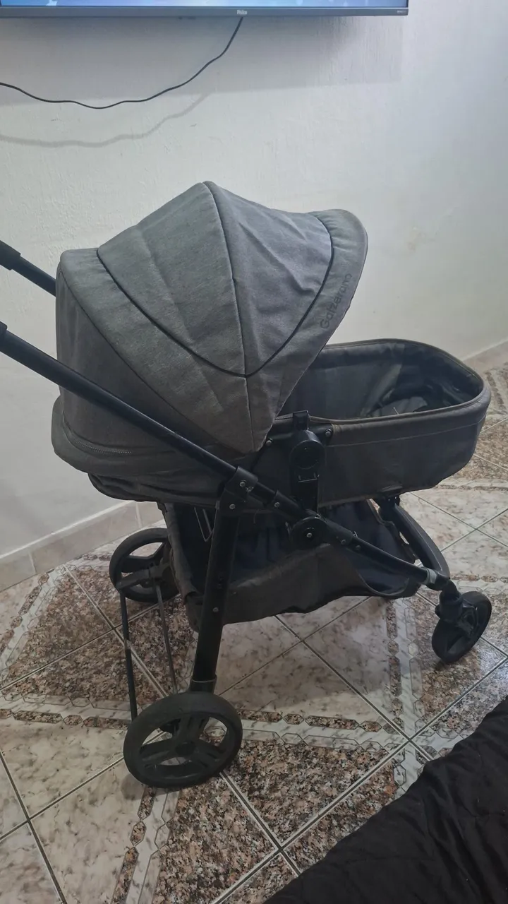 Carrinho de bebê Galzerano moises , fica em 3 posições (deitado, meio termo e sentado). Usado, porém muito conservado. Único detalhe na borracha que esta ressecado!