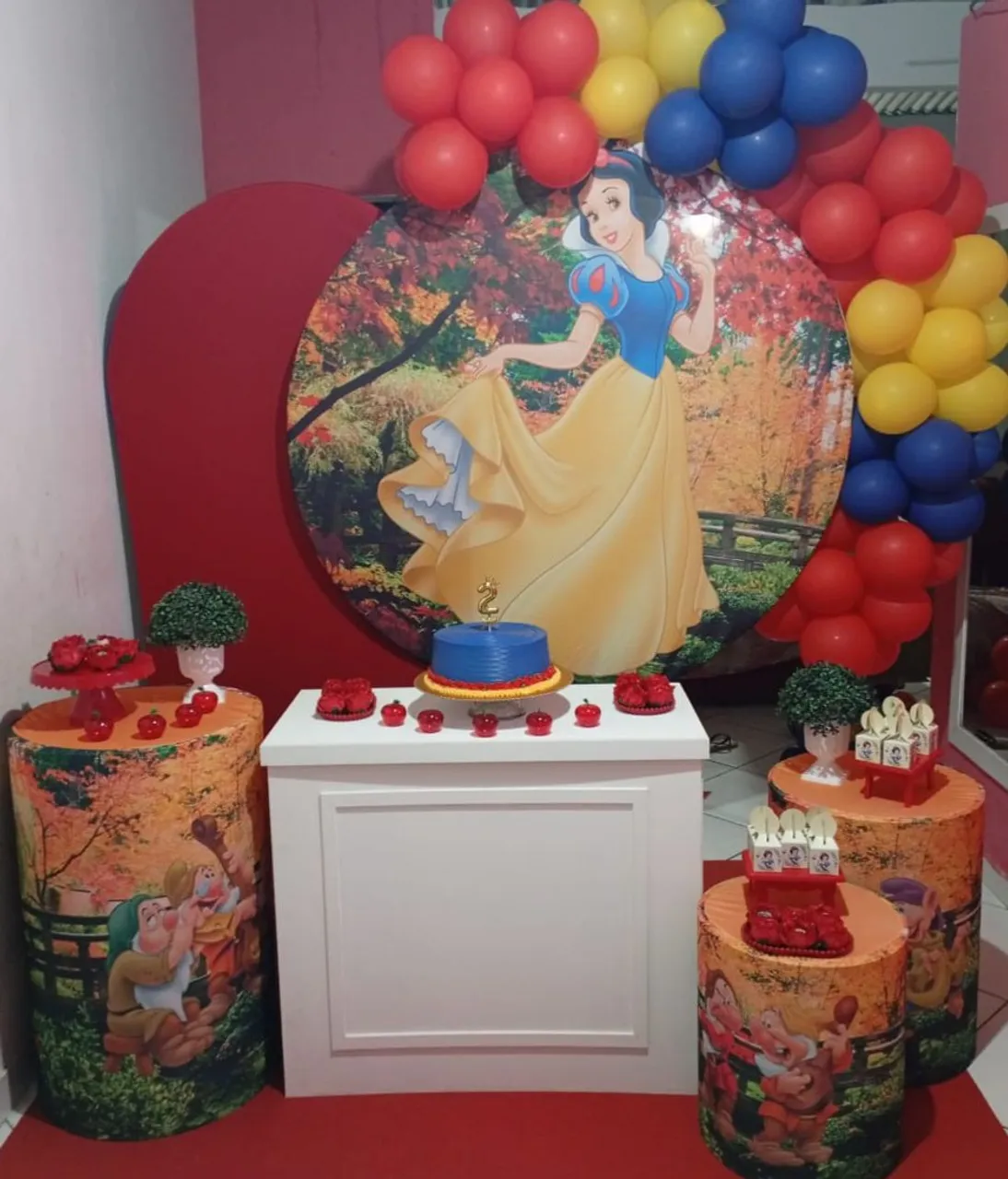 Decore a festa da sua pequena com o tema da Branca de Neve! Kit completo para pegar e montar, transformando o aniversário em um conto de fadas.