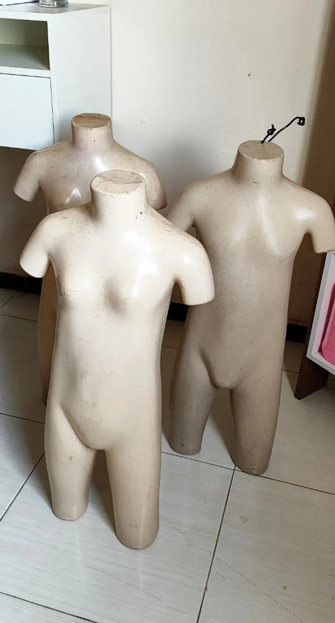 Conjunto com 3 manequins infantis, ideais para exposição de roupas em lojas ou eventos. Perfeitos para apresentar suas peças de forma atrativa e profissional.
