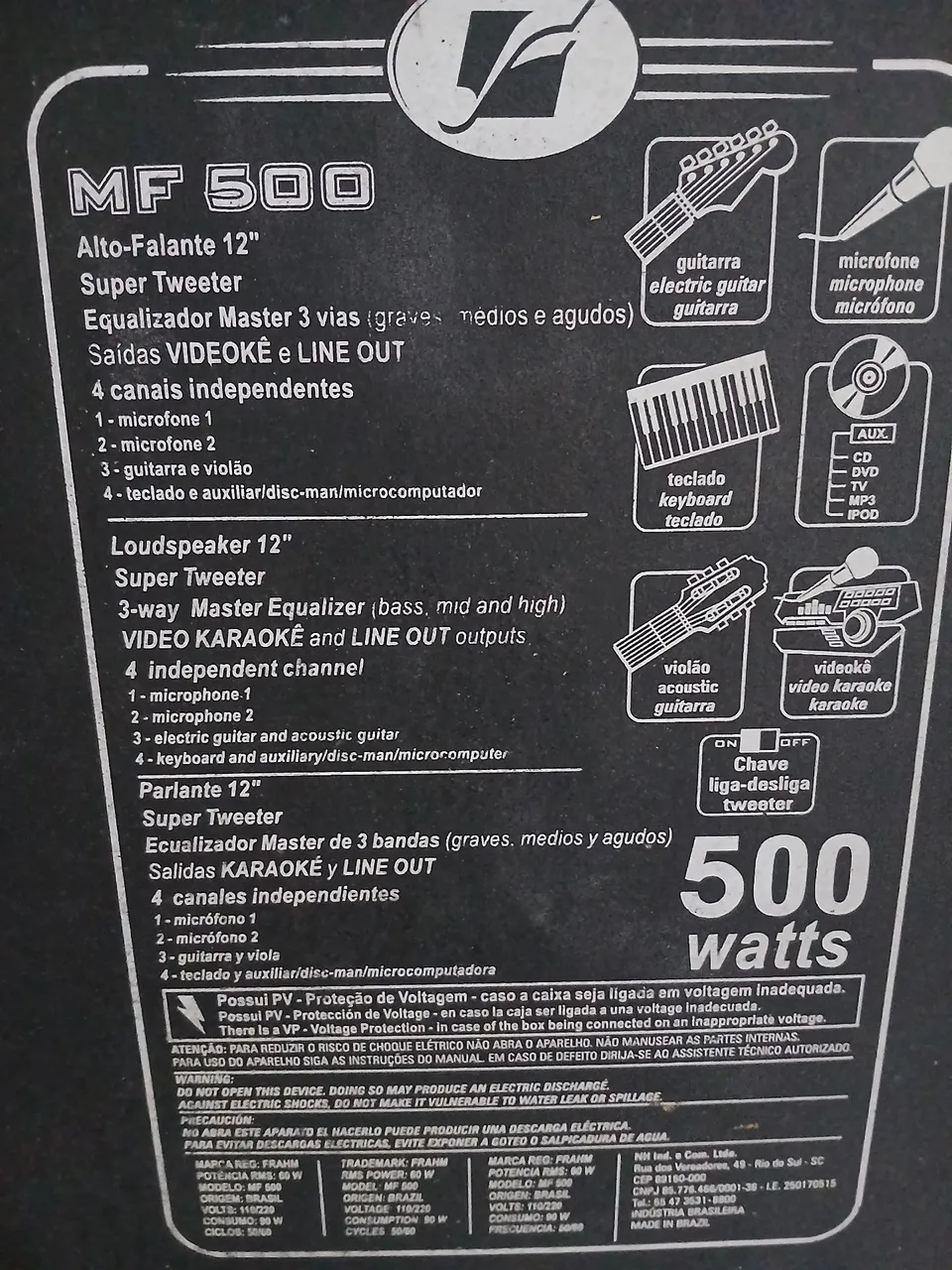 Potencialize suas festas com a Caixa Amplificada MF 500! Com 500W de potência, equalizador de 3 vias e saídas para Karaokê, guitarra e teclado, este equipamento é perfeito para qualquer evento. Experimente um som de alta qualidade e deixe a diversão rolar!