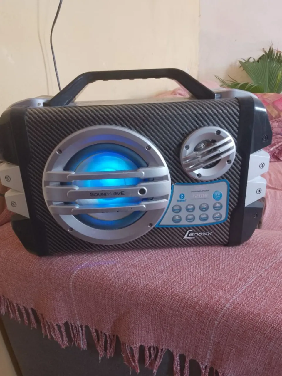 Caixa de som Lenoxx, usada, porém é boa e funciona perfeitamente. Só funciona na tomada.
