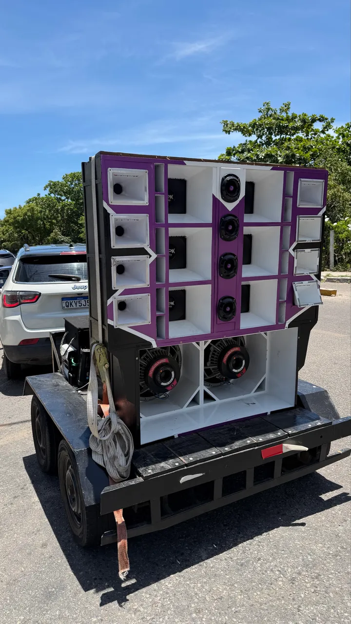 Carrocinha nova 2 eixo 3 taramps 3000 1 taramps 8000 Fonte jfa 120 amperes 1 ts 400 2 bateria 150amp 6 médios Vpk 2 Vulcano 18 8 cornetao 4 Twitter Estrutura nova