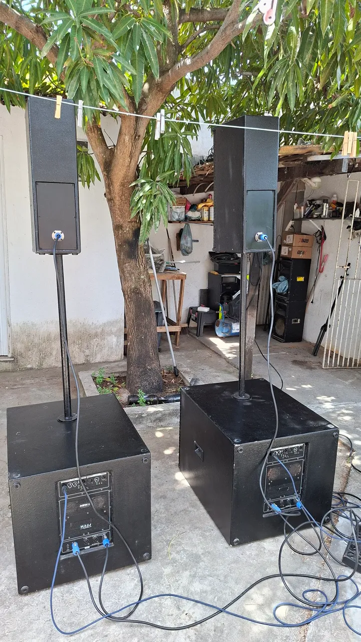 Potencialize suas festas e eventos com este incrível sistema de som! Qualidade sonora impecável e potência para animar qualquer ambiente. Perfeito para quem busca um som de alta performance, 2400w cada um kit (79) 9-9939-9555