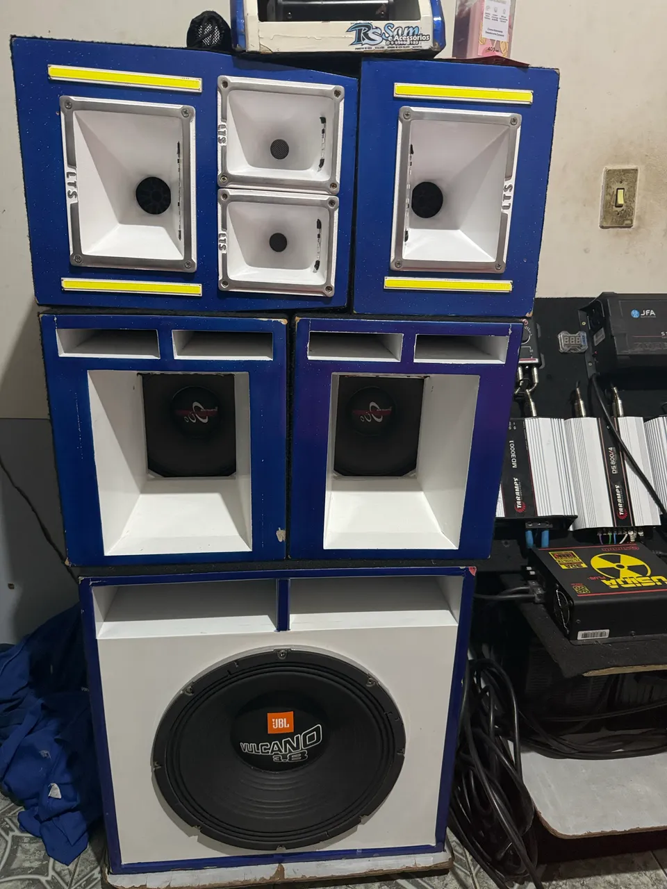 Vendo torre do meu uso particular tudo comprado novo 1 grave de 15, 2 médios de 10, 2 corneta 405 JBL, 2 TI 220 JBL, 2 módulos MD 3.000, 1 módulo 800x4 2 baterias 100 amperes barramento cabos rack móvel com mesa 3 canais stetsom toca cd pioneer x7000, processador stetsom 2448 multicabo 15 metros, 2 fontes 1 stetsom 120 amperes a outra usina de 90 amperes led digital barrinha de estrobo som tudo perfeito.
