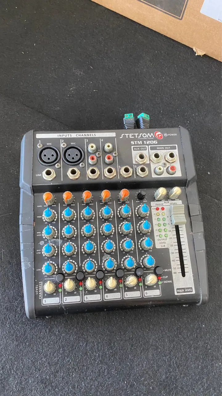 Mixer de áudio Stetsom STM 1206 com 6 canais, ideal para diversas aplicações de áudio. Oferece controle preciso e versatilidade para suas necessidades.
