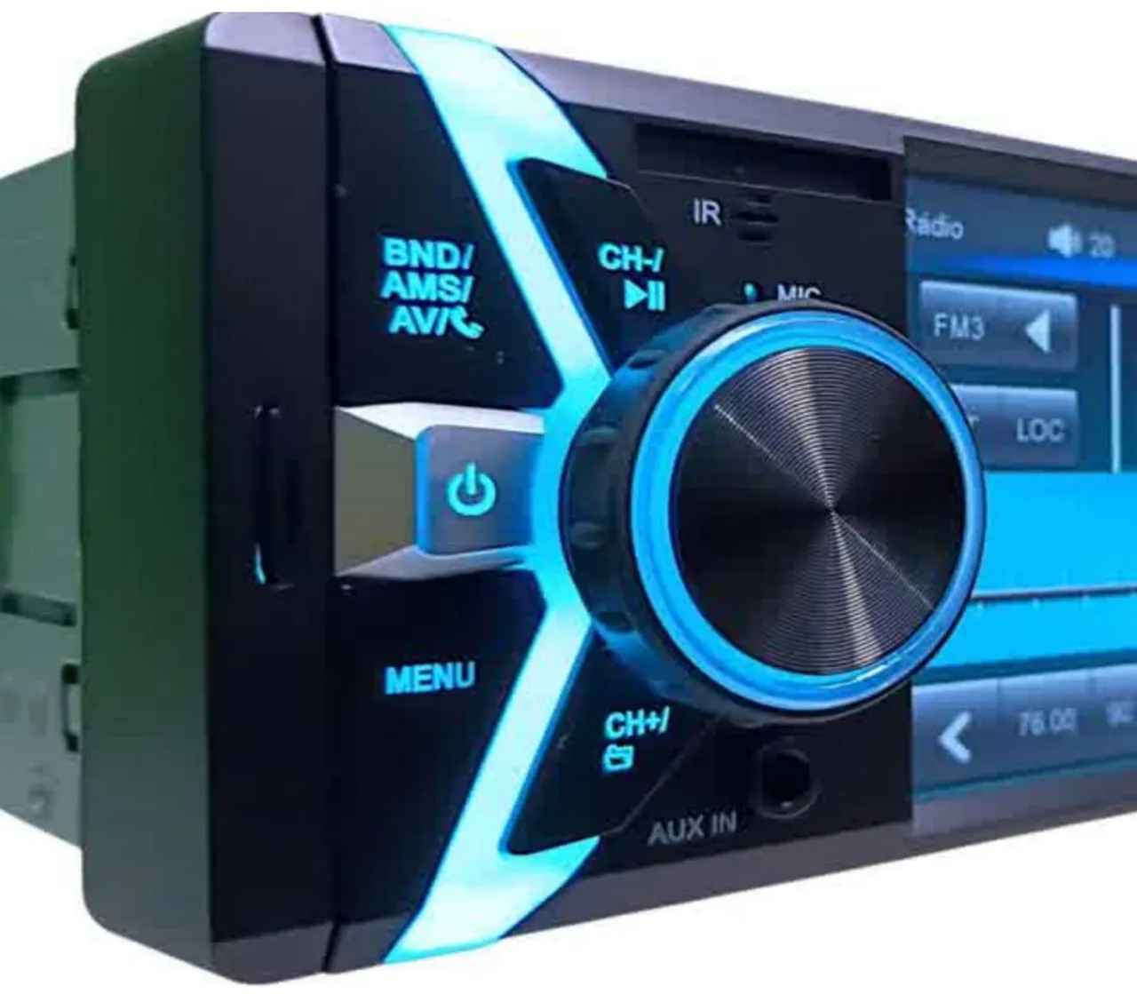 Multimídia1 Din universal com espelhamento Bluetooth duas portas USB iluminação em sete cores potência de 200 watts tela touch acompanha controle remoto entrada para câmera de ré saída de vídeo para telas auxiliares conexão para o controle de volante, compatível com controle remoto de longa distância JFA Red line. conectoresde fios traseiro ISO padrão montadoras.