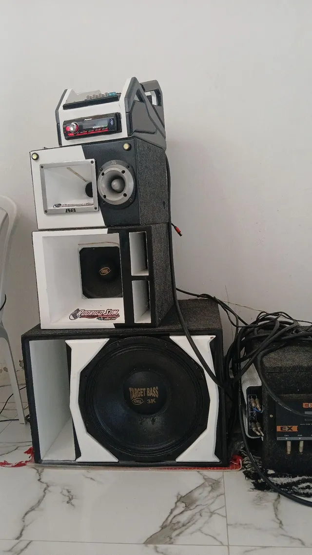Grave de 15 eros 3k Corneta d305 jbl Twite st400 jbl Mesa taramps t0302fx Toca CD pioneer mixtrax Médio 10pl petinho da eros 500rms Módulo ds 1200x4 taramps Módulo 3000x1 taramps Processador px 1 pro Fonte usina 120ap *SMART* 2 olhos de gato Fita led Bateria moura 105ap 10 MT de multe cabos *rack movel* 5mt de cabos da aparelhagem pros falantes Caixotes feitos na FAROESTE EQUIPADORA