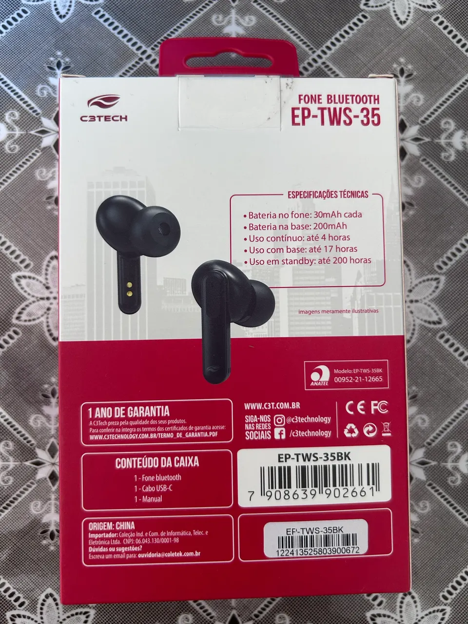 Vendo fone de ouvido C3Tech EP-TWS-35BK novo e nunca usado. É um modelo TWS (True Wireless Stereo) moderno, ideal para quem busca liberdade de fios com alta tecnologia e conexão estável.