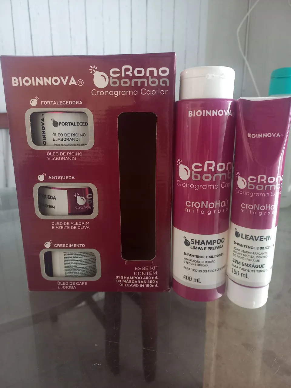 Crono bomba cronograma capilar! Tenha um cabelo forte, hidratado e reconstruído. Shampoo, máscaras e leave-in para um cuidado completo. Diga adeus ao frizz e tenha um cabelo com brilho e volume!