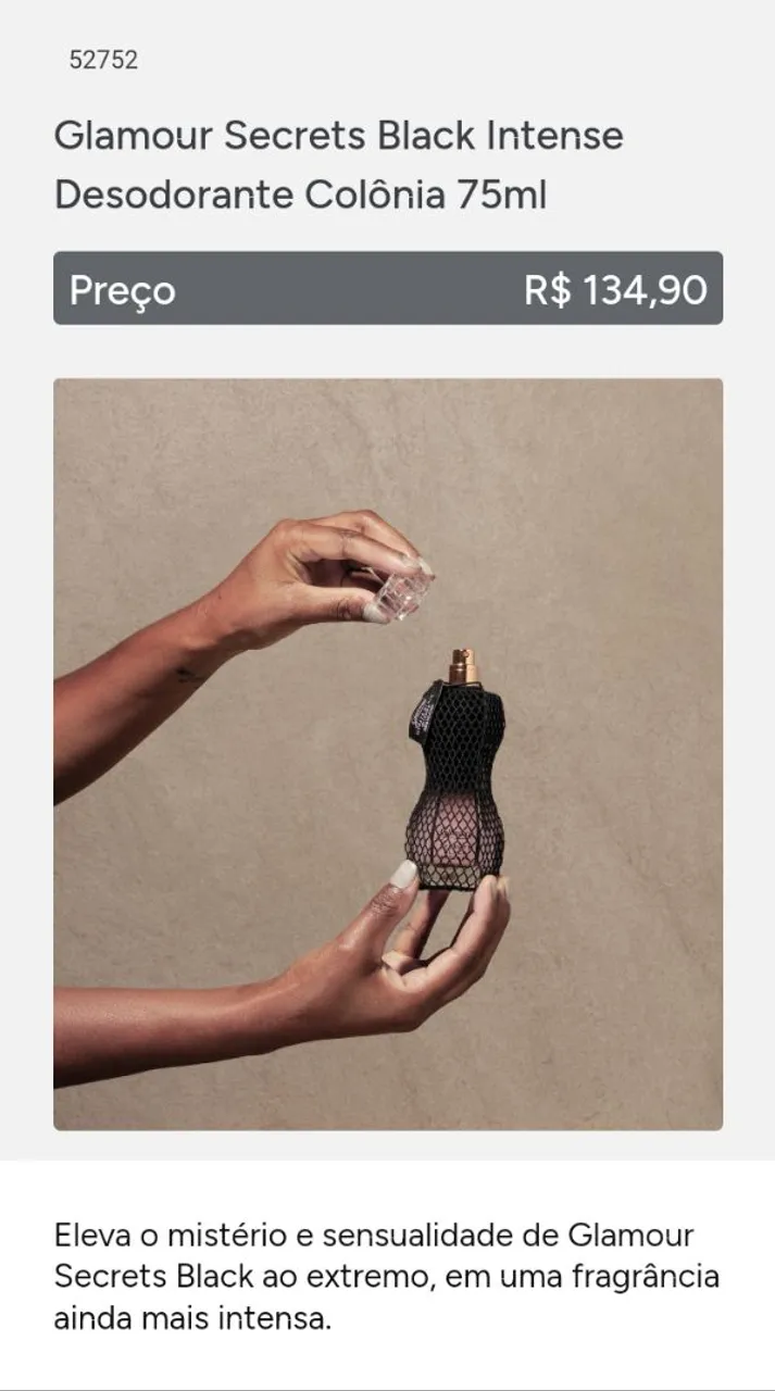 Eleve sua sensualidade com Glamour Secrets Black Intense! Uma fragrância intensa e misteriosa para momentos inesquecíveis.