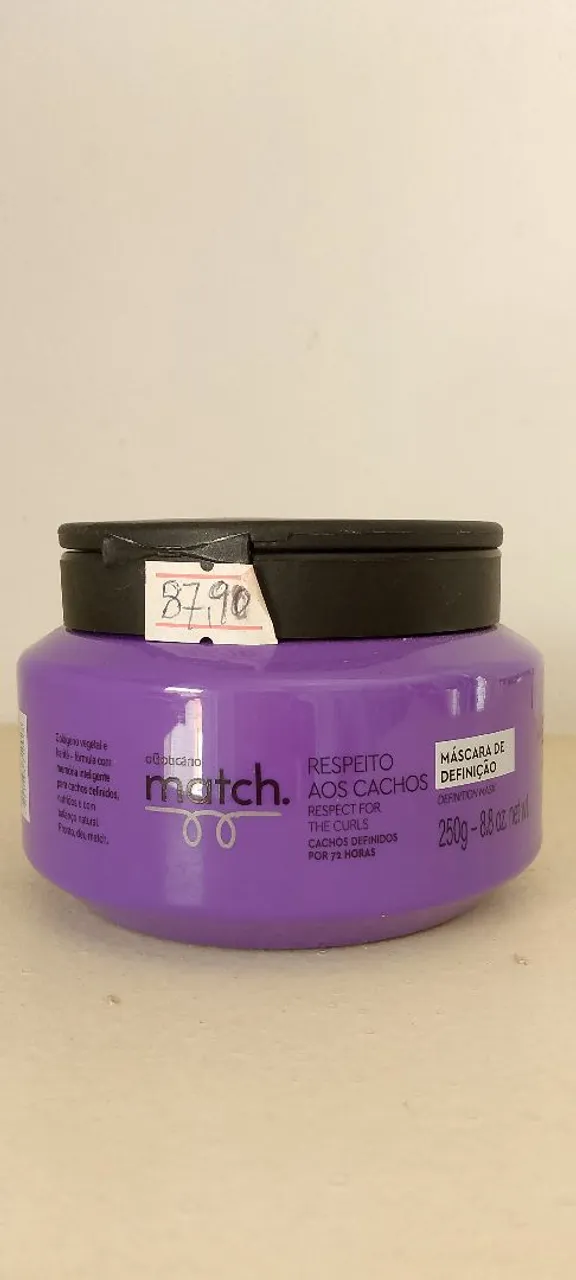 A máscara capilar Match define e controla os cachos, proporcionando um resultado incrível por até 72 horas. Sua fórmula com ativos vegetais garante cachos definidos, macios e com brilho. Experimente a diferença e conquiste cachos perfeitos! DE R$87,90 POR R$40,00