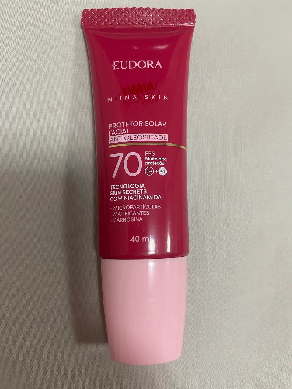 Proteja sua pele com o Protetor Solar Facial Eudora Niina Skin! Com FPS 70 e tecnologia Skin Secrets, oferece alta proteção UVA/UVB e efeito antioleosidade. Enriquecido com Niacinamida e micropartículas matificantes, proporciona um acabamento perfeito e cuidado diário.