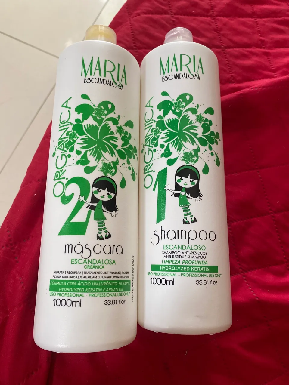 Kit de tratamento capilar Maria Escandalosa Orgânica! Shampoo anti-resíduos para limpeza profunda. E selagem com fórmula com ácido hialurônico.