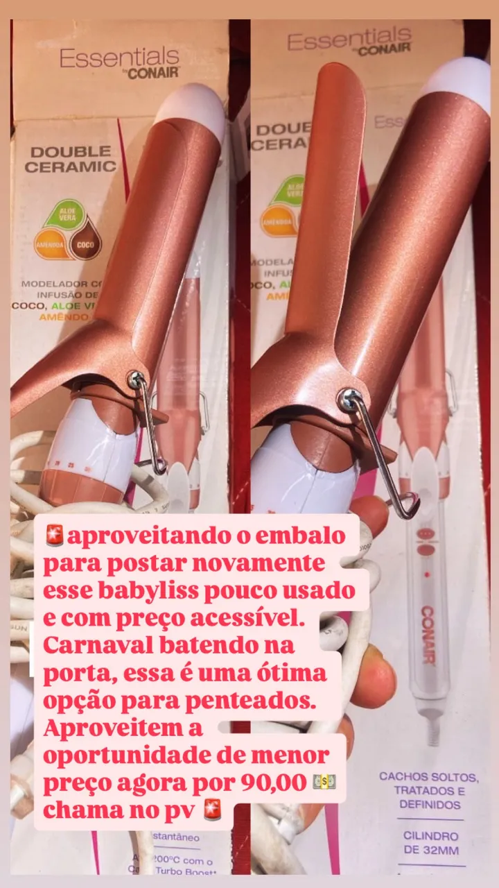 Crie cachos incríveis com este modelador de cabelo Conair Essentials! Perfeito para o Carnaval, este babyliss com cilindro de 32mm proporciona cachos soltos, tratados e definidos. Aproveite esta oportunidade por um preço especial!