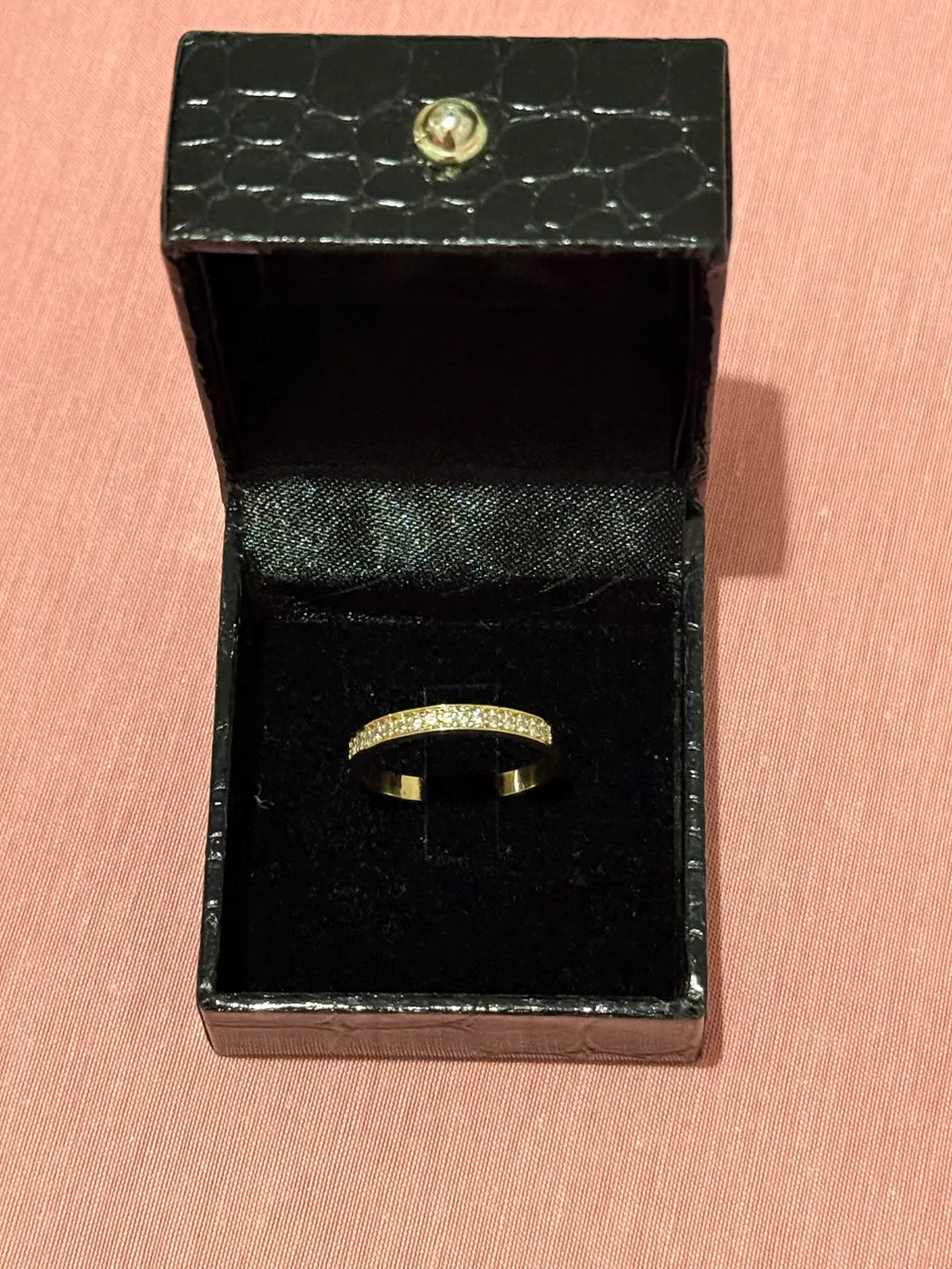 Meia aliança em ouro 18k Linda meia aliança em ouro 18k com zircônias cravejadas, um acessório perfeito para realçar sua beleza e elegância.