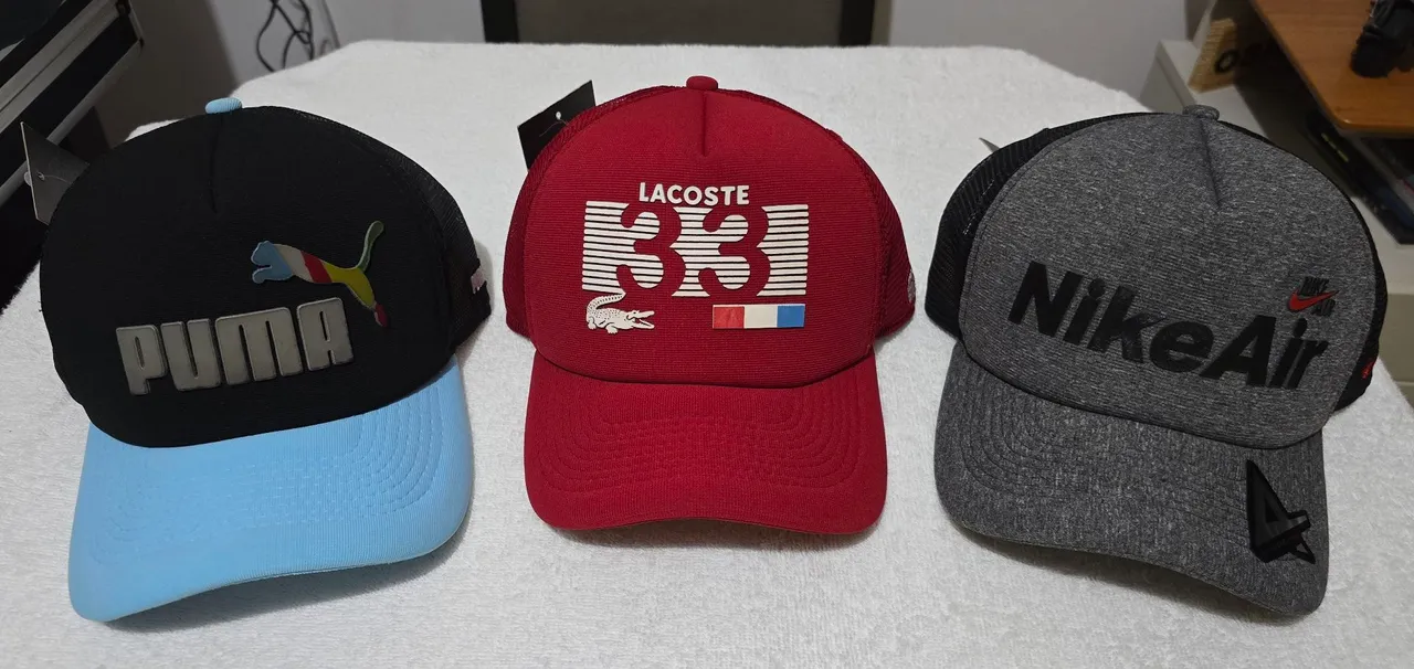 Adquira já os bonés Puma e Nike Air, perfeitos para um visual moderno e cheio de estilo. Feitos com tela de alta qualidade, proporcionam conforto e respirabilidade. Escolha o seu e arrase!