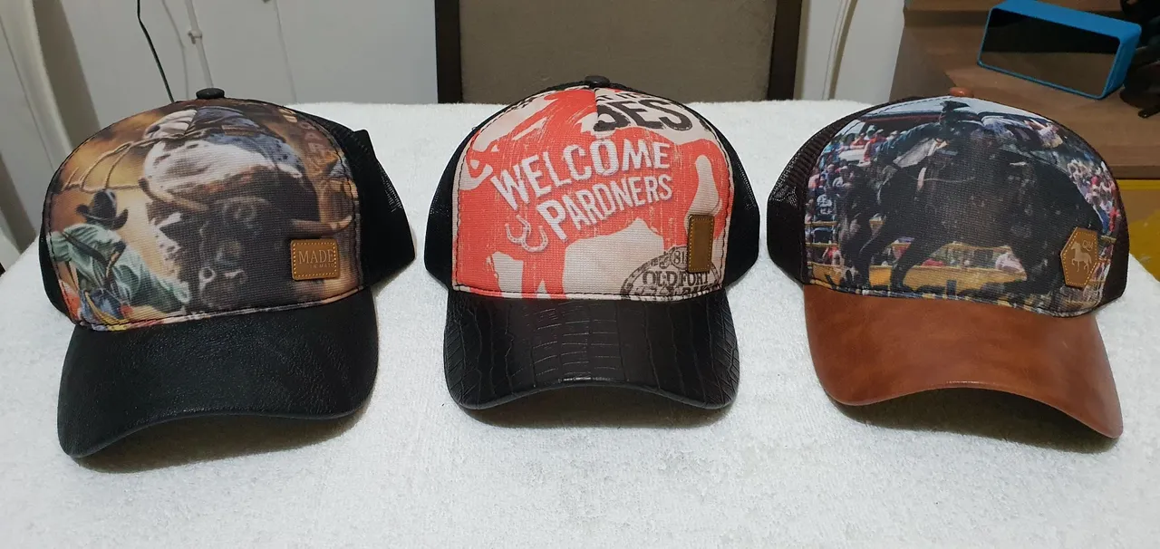 Bonés de Vaquejada de tela Aceitamos cartões de crédito e débito Fazemos entrega WhatsApp