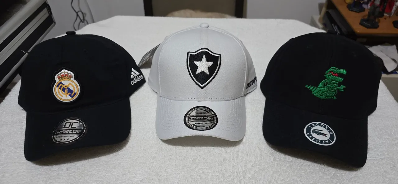 Bonés do Real Madrid e Botafogo Aceitamos cartões de crédito e débito Fazemos entrega WhatsApp