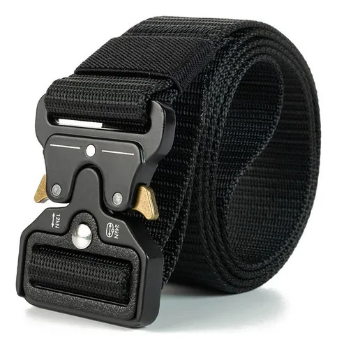 Cinto tático militar de alta resistência com fivela de metal e design moderno. Ideal para uso em atividades ao ar livre e no dia-a-dia. Durabilidade e segurança garantidas.