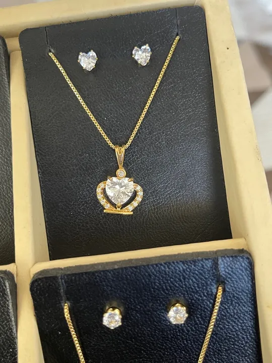 Lindo conjunto de colar e brincos com coração cravejado em zircônia. Perfeito para usar em ocasiões especiais e presentear quem você ama!
