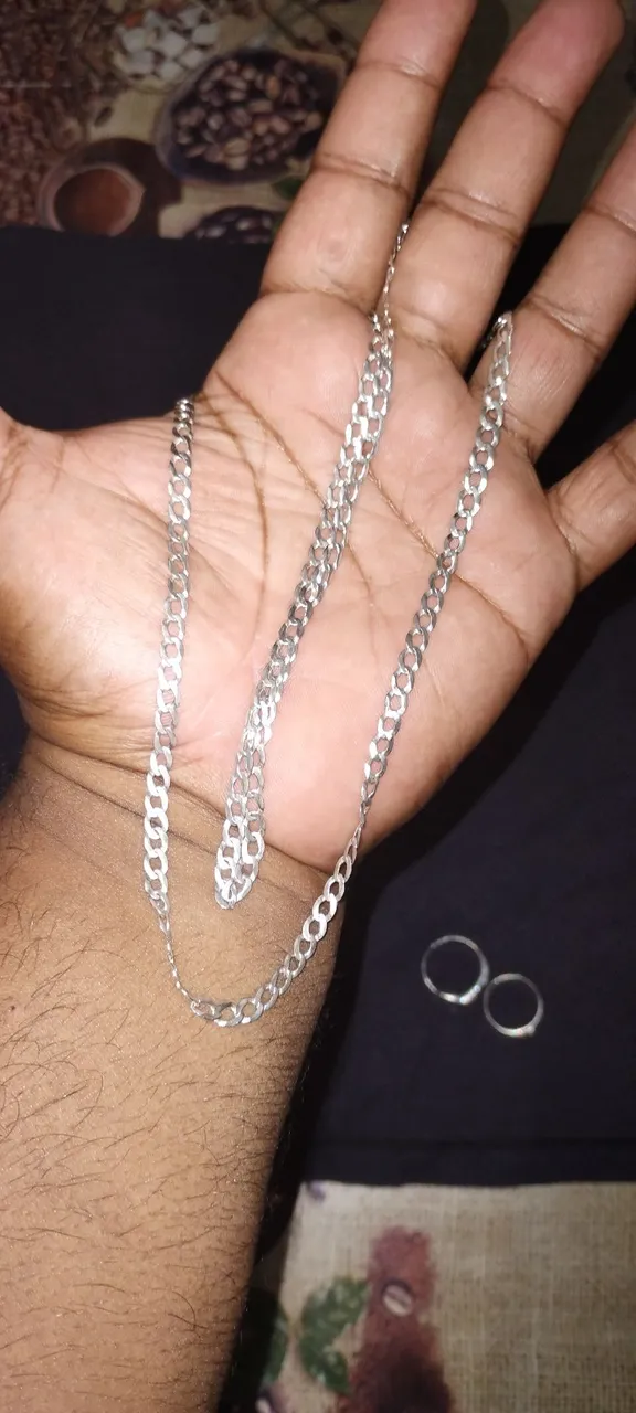 Linda corrente de prata, perfeita para complementar seu visual com elegância e estilo. Uma joia que combina com qualquer ocasião!