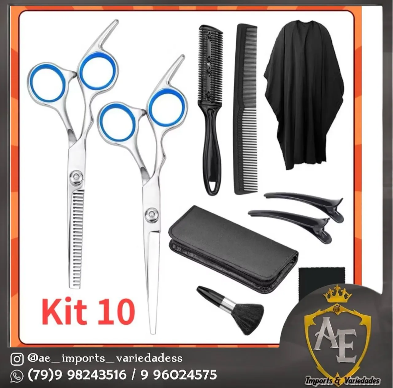 Kit de barbearia completo para você! Inclui tesouras, pentes, capa e muito mais para um corte perfeito. Ideal para profissionais e amantes do cuidado com a barba.