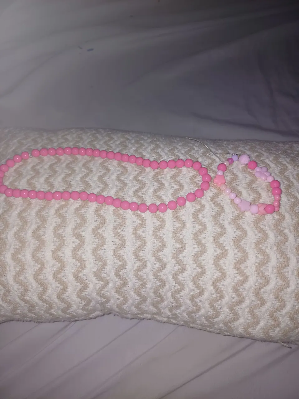 Lindo kit infantil com colar e pulseira rosa, perfeito para dar um toque especial no visual das pequenas. Um acessório charmoso e delicado para complementar qualquer look?