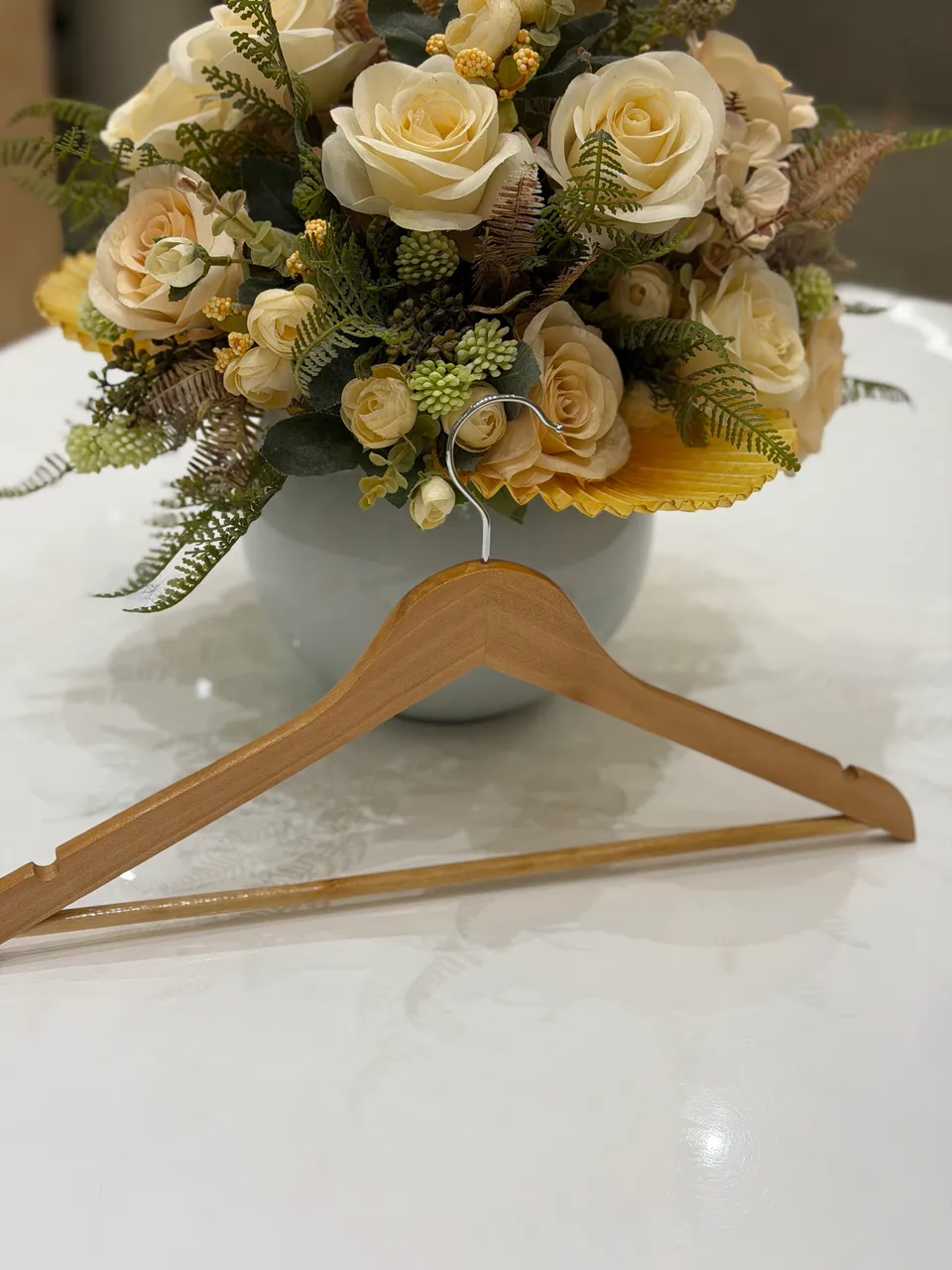 Cabide de madeira, ideal para organizar suas roupas com elegância e praticidade. Design clássico e resistente, perfeito para qualquer guarda-roupa ou lojas.