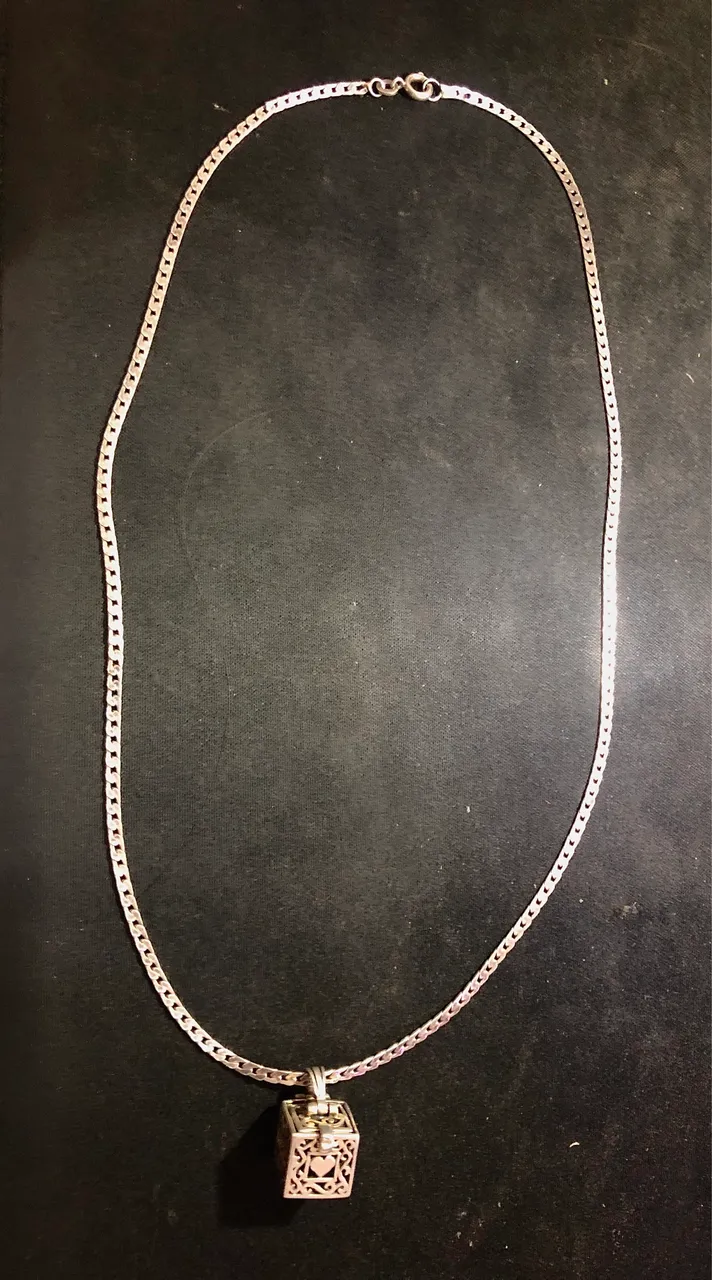 Lindo colar com pingente em formato de cubo com detalhes vazados e com mecanismo que abre. Confeccionada em prata 925 e cheia de detalhes, design elegante em uma peça única feita por encomenda.