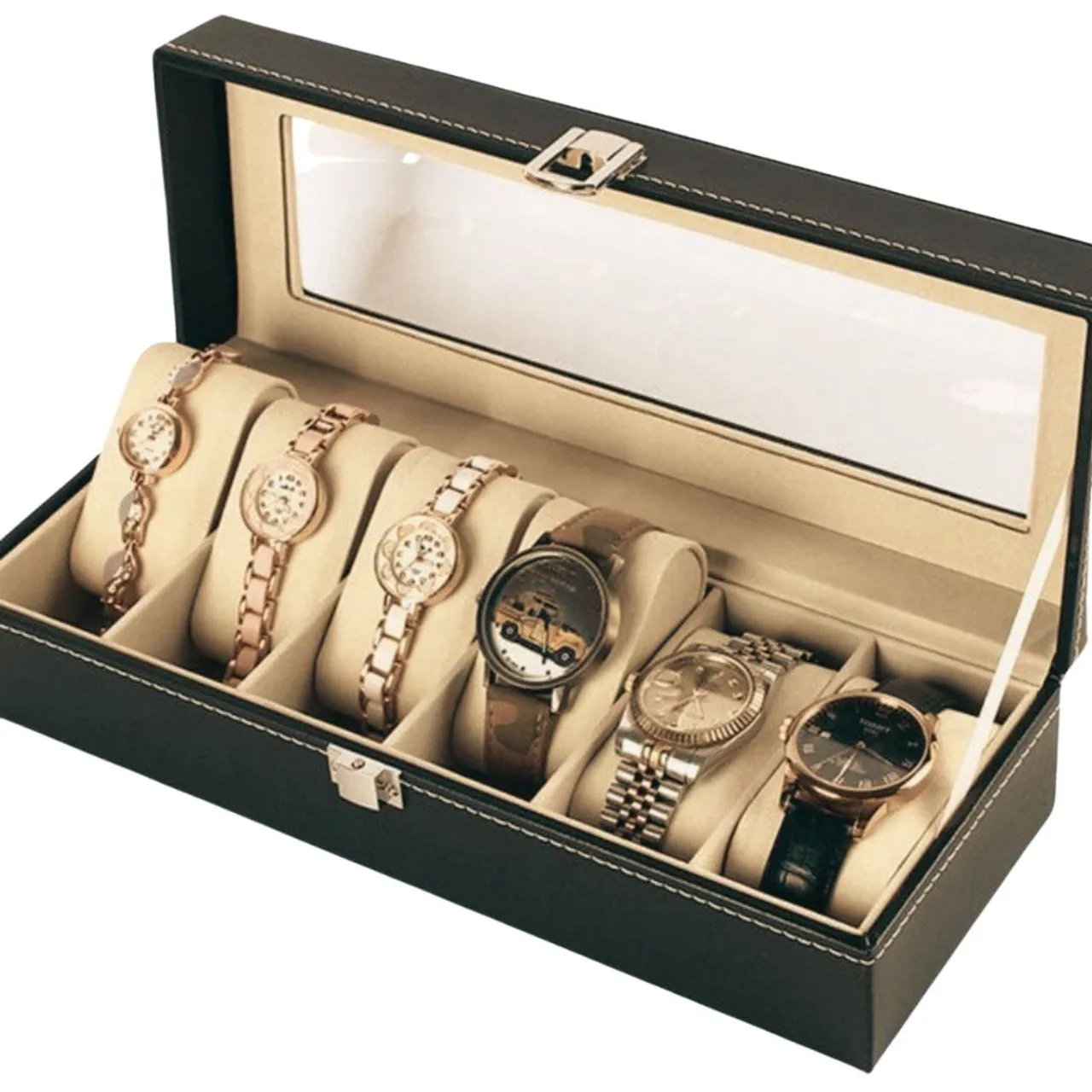 Organize seus relógios com elegância! Este porta-relógios em couro, lacrado e com design sofisticado, é perfeito para proteger e exibir suas peças favoritas. Ideal para colecionadores e amantes de relógios.