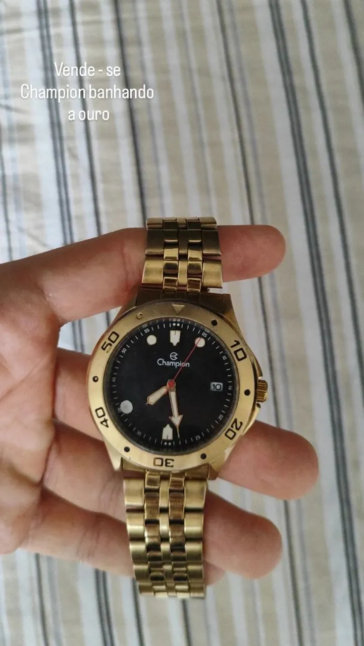 Relógio Champion banhado a ouro, um acessório que combina elegância e estilo. Perfeito para complementar seu visual com um toque de sofisticação.