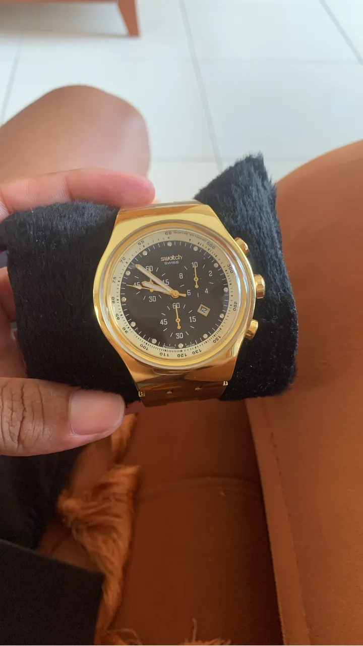 Relógio Swatch, um clássico atemporal que combina elegância e funcionalidade. Perfeito para quem busca estilo e precisão.