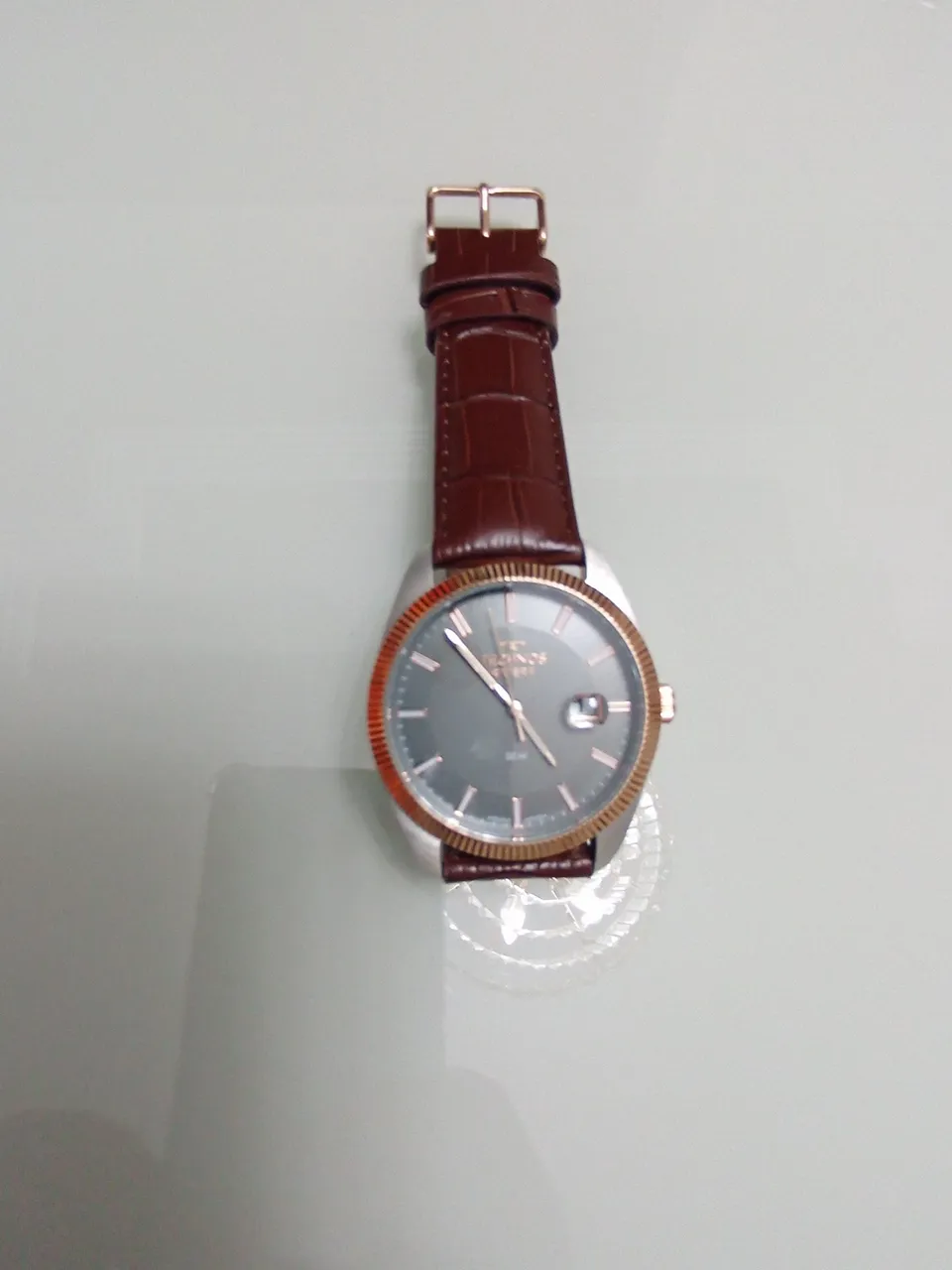 Relógio de pulso tecnos sofisticado com design clássico e pulseira de couro marrom. Perfeito para complementar qualquer estilo com elegância e bom gosto. Resistente a água