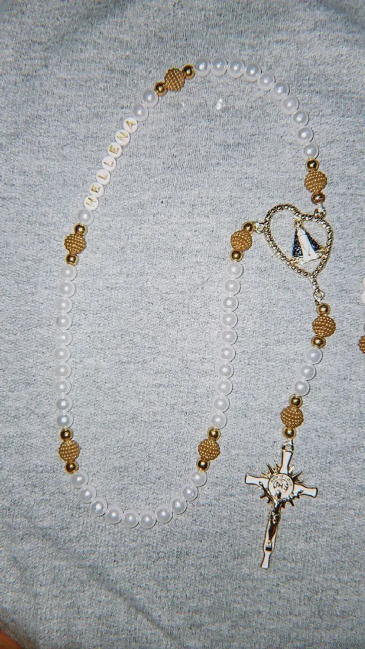 Terço personalizado pecas nas cores prata e dourado e varias cores de micanga e letras ?