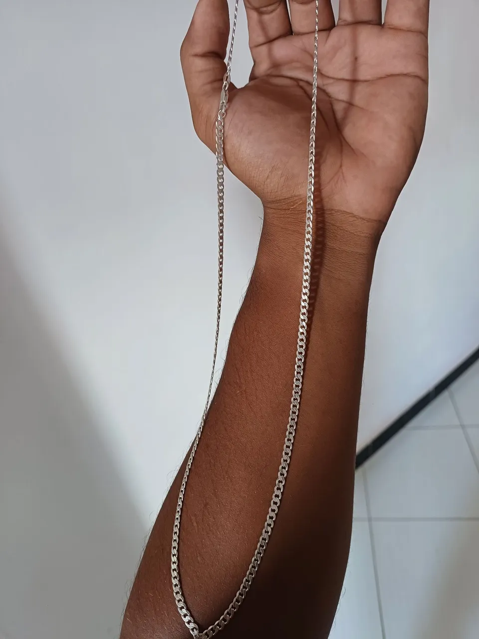 Linda corrente de prata com 15 gramas, perfeita para adicionar um toque de elegância ao seu visual. Design moderno e sofisticado para você brilhar!