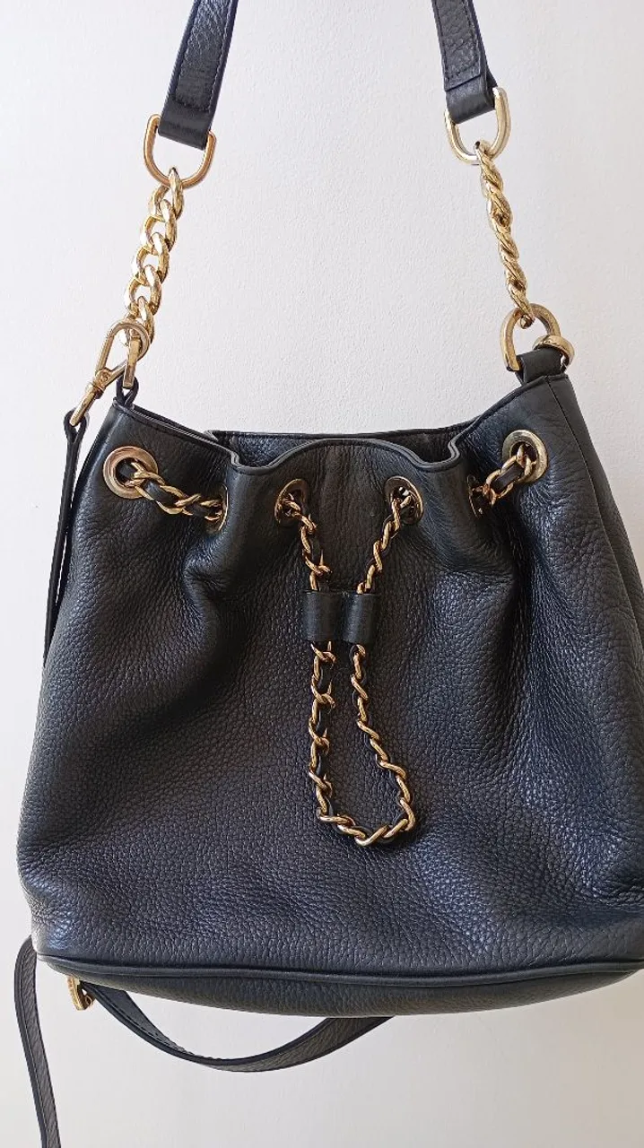 Linda bolsa Michael kors de ombro preta, com detalhes em correntes douradas. Design moderno e elegante, perfeita para diversas ocasiões.