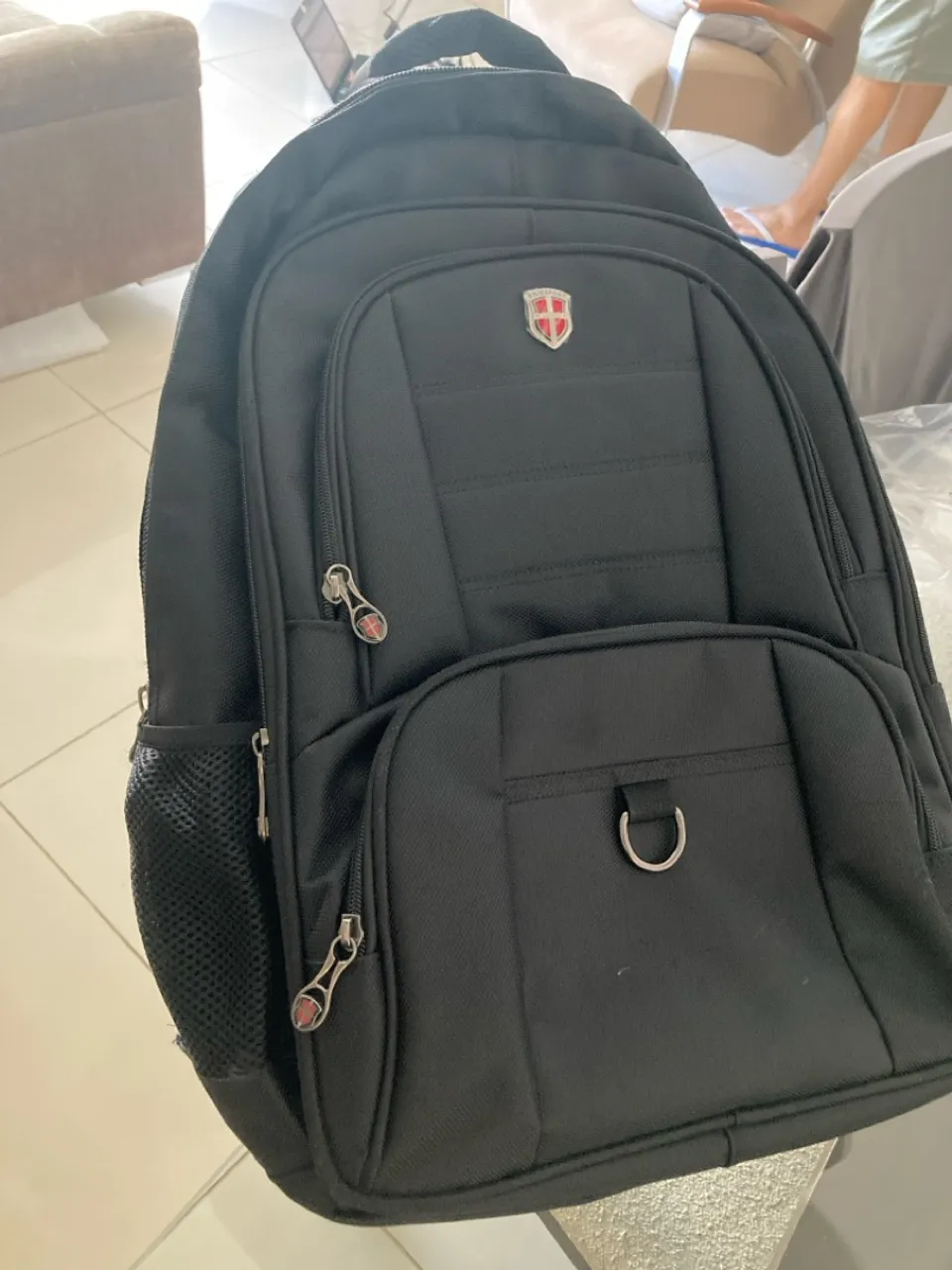 Mochila preta de alta qualidade, ideal para o dia a dia. Compartimento para notebook, bolsos organizadores internos e externos, e design moderno e resistente.