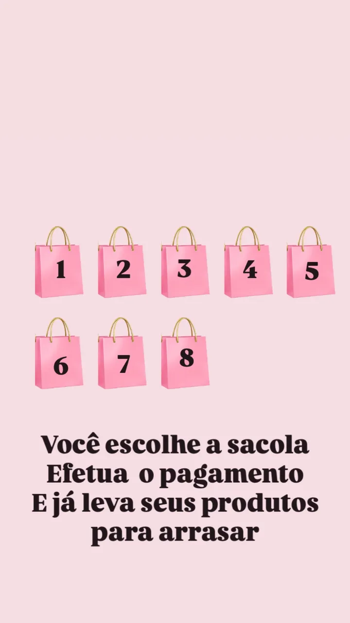 Escolha a sua sacola da sorte e garanta um produto incrível! Leve seus produtos para arrasar. Não perca essa chance!