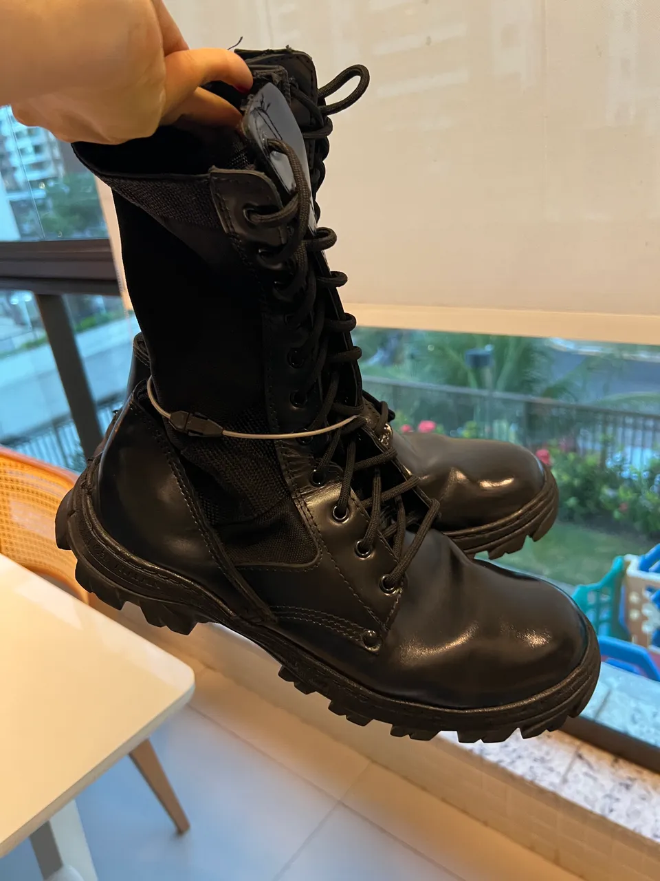 Vendo coturno masculino, tamanho 45, em ótimo estado de conservação. Pouco uso, sem rasgos, sem defeitos e com solado firme. Confortável e resistente