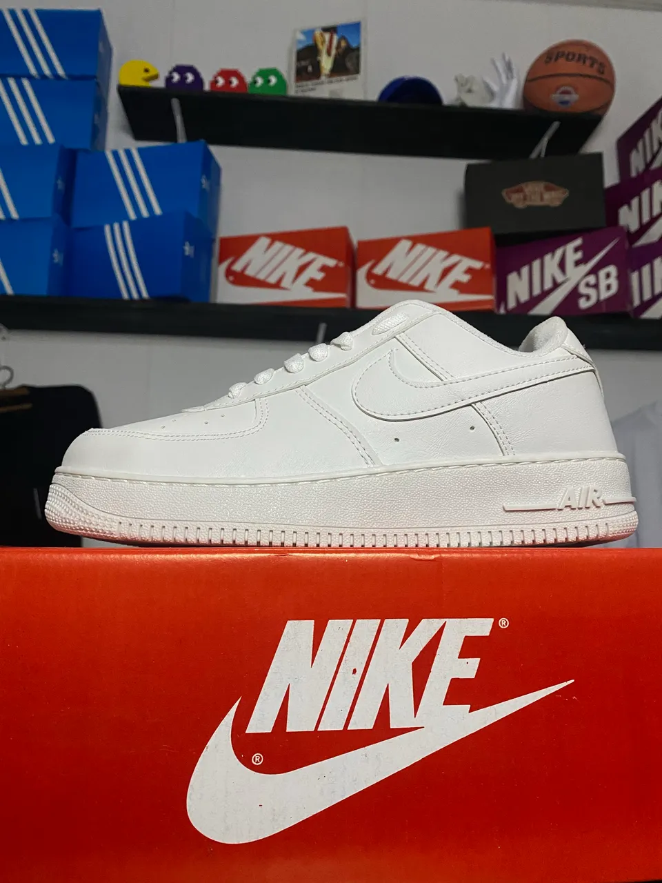 Nike Air Force 1 branco, um clássico atemporal que combina estilo e conforto. Design icônico e versátil para qualquer ocasião.