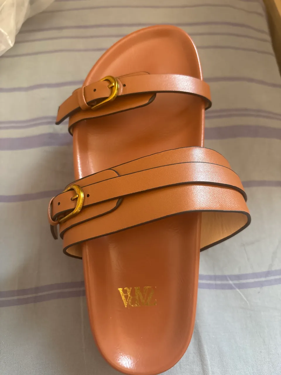 Sandália tipo papete nova, cor marrom.