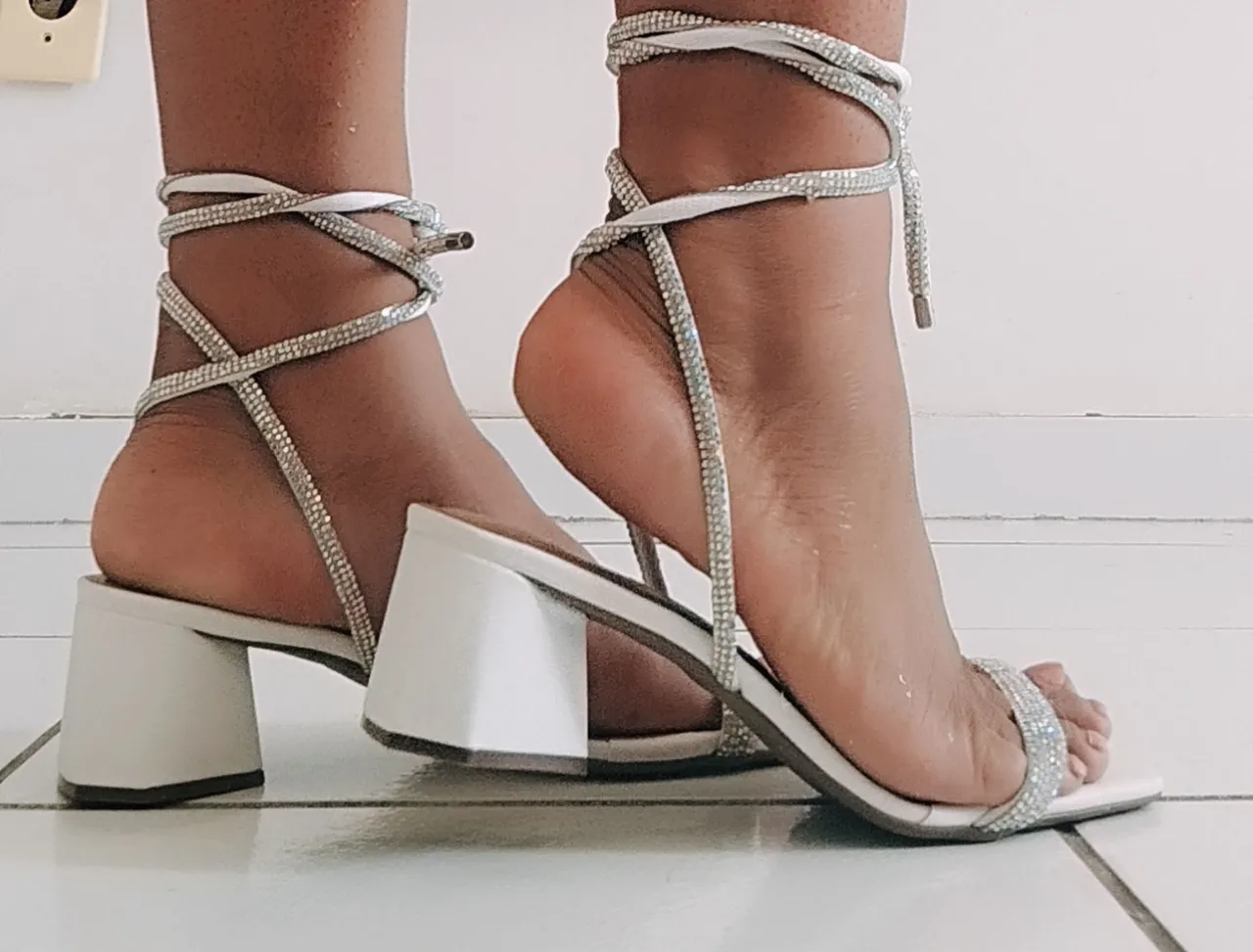 Sandália feminina Vizzano branca com detalhes em strass. Design elegante e sofisticado para diversas ocasiões.