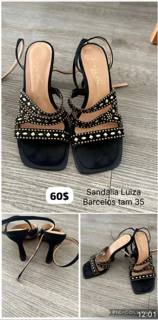 Sandália Luiza Barcelos preta, com detalhes dourados. Um toque de elegância e estilo para seus pés!
