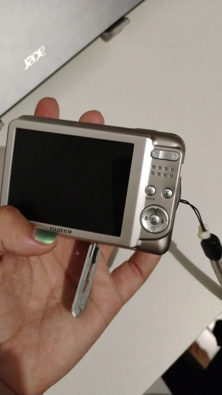 Câmera que funciona com pilhas AA, acompanha seu cartão de memória, Único defeito é sua tampa que guarda as pilhas, ele está meio solta, mas funciona perfeitamente. Ideal para decoração e etc