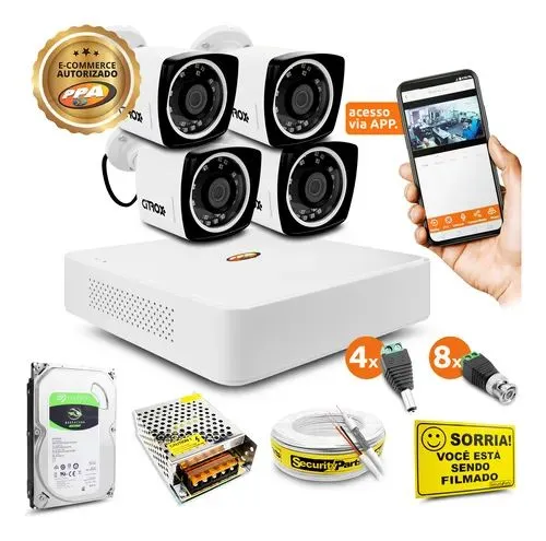 Kit de câmeras de segurança PPA com acesso via app. Monitore sua casa ou escritório com alta qualidade de imagem.