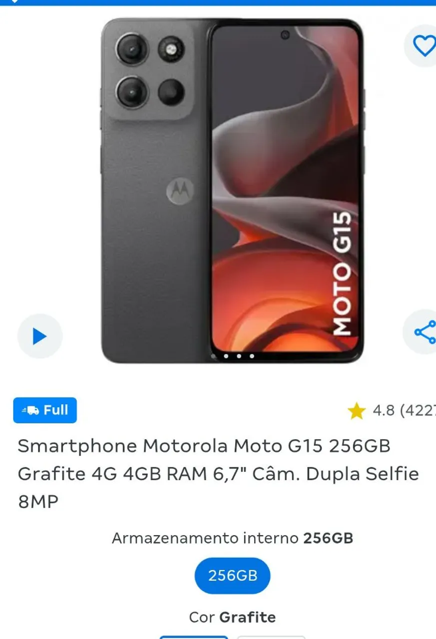 Experimente o desempenho excepcional do Motorola Moto G15! Com 256GB de armazenamento, você terá espaço de sobra para seus arquivos e aplicativos. Sua tela vibrante e a câmera dupla selfie de 8MP garantem fotos incríveis. Design elegante em grafite e 4GB de RAM para uma experiência fluida.