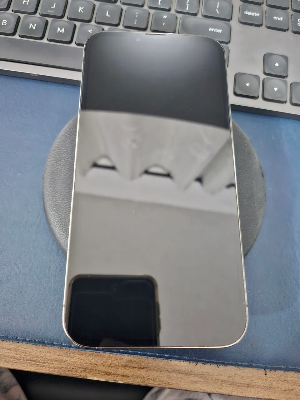 iPhone 13 Pro Max de 128GB. Tela e fundo sem nenhum arranhão, sempre usado com película, algumas manchas nas laterais por sempre ser usado com capinha, não tem amassados, só manchas. Bateria com 76% de saúde pois o celular nunca foi aberto para nenhum reparo, mas a bateria dura o dia todo tranquilamente ainda assim. Tá sem pelicula agora para as fotos mas entrego com pelicula e capinhas.