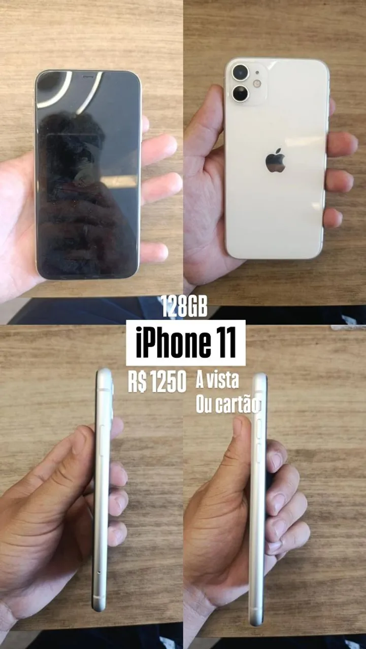 iPhone 11 com 128GB de armazenamento.