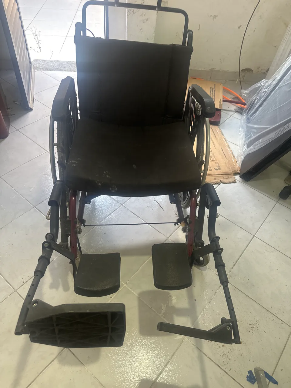 Cadeira de rodas resistente e confortável, ideal para auxiliar na mobilidade. Possui design ergonômico e apoio para os pés, garantindo o conforto do usuário.